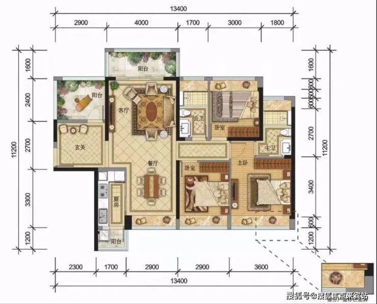 户型赏析:南北通透,尺度阔达,动静分区,三阳台设计,奢阔主卧,配备专属卫生间,宽绰三房,超高使用空间。