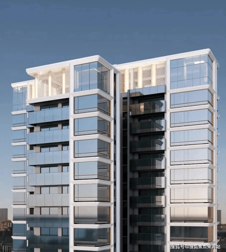 立面设计以“温暖港湾”为灵感,独具识别性。从广深沿江高速、深中通道的视角看,天际线呈前中后三个层次高低起伏,形成流动天际线。