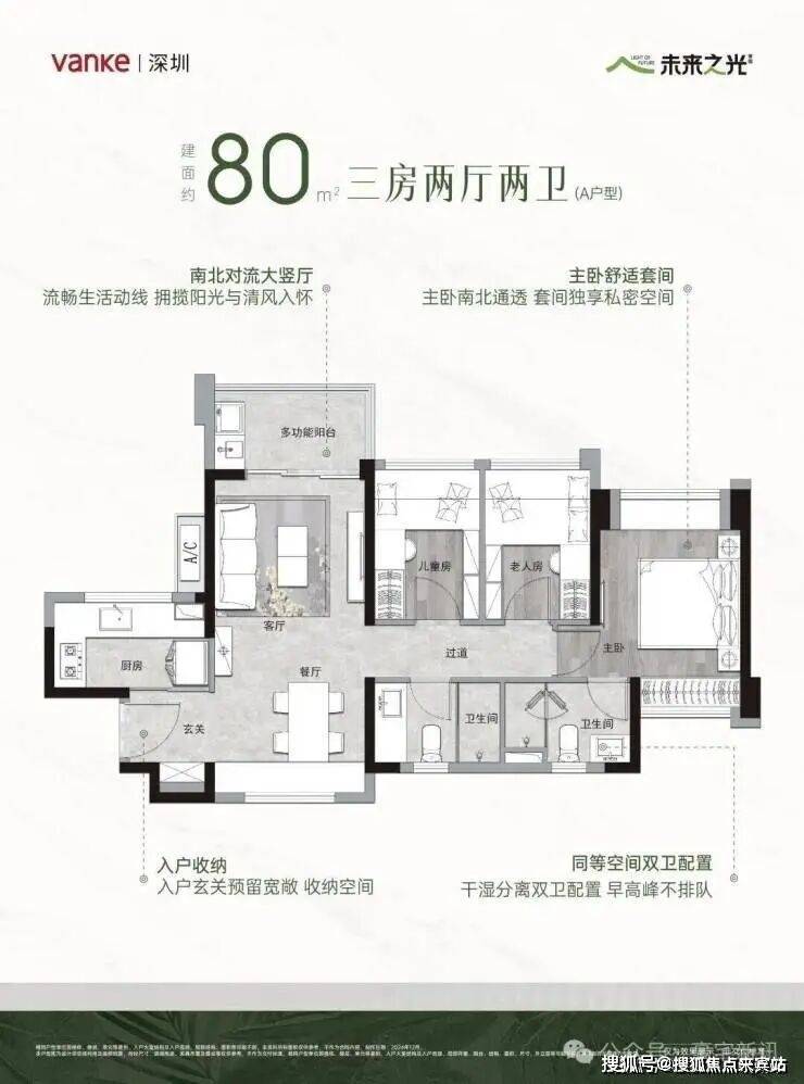 💎建面约80㎡A户型3房2卫