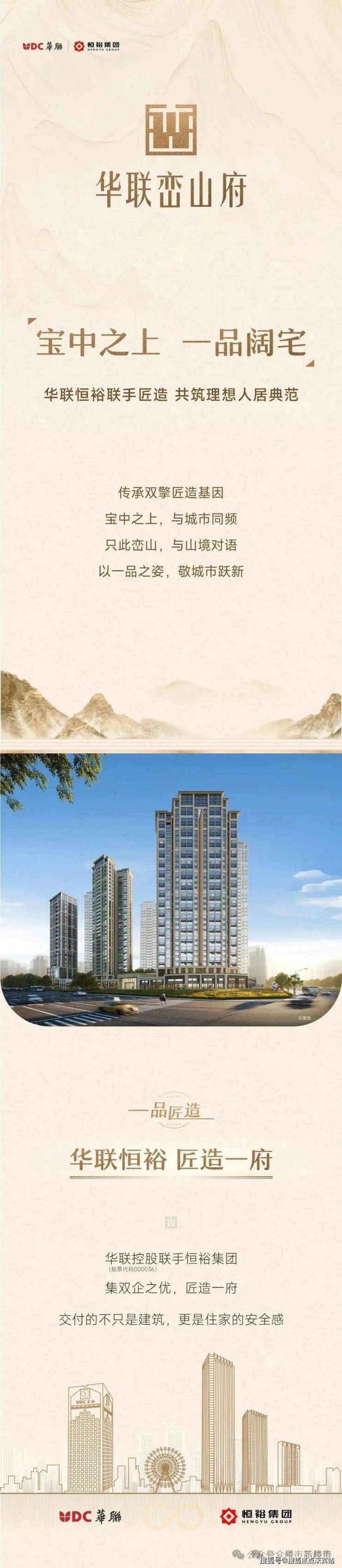 华联峦山府由上市公司华联控股、“豪宅专家”恒裕集团联手匠造,建面约96-119㎡臻装平层、建面约133-178㎡复式阔宅。