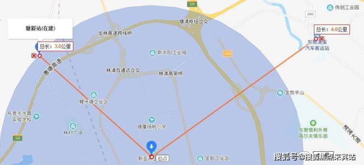 塘厦项目坐拥 4 条高速 8 个出口,5 分钟车程达清溪、林村、田心出口,30 分钟抵龙华、华为坂田,40 分钟至福田 CBD。在建深圳外环高速设平山、桥陇双出口,助力莞深同城;赣深高铁预计明年年底通车,距东莞南站仅 3 公里;2023 年武深高铁开通,东莞南站 8 轨交汇,规模有望超虎门站。此外,项目距深圳 4 号线清湖北延线塘厦中心站直线 1.2 公里,一站即达东兴大道站。