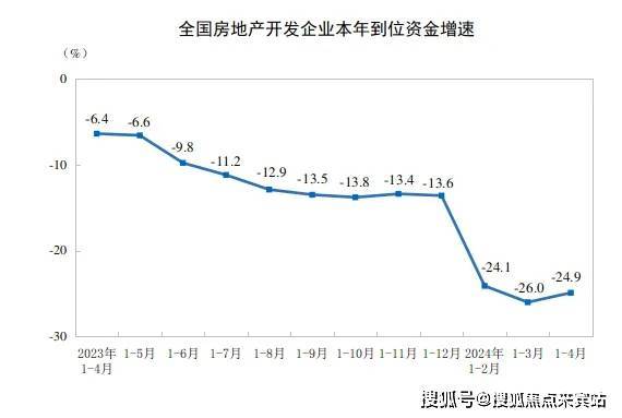 1—4月份,房地产开发企业到位资金34036亿元,同比下降24.9%。其中,国内贷款5583亿元,下降10.1%;利用外资9亿元,下降46.7%;自筹资金11736亿元,下降10.1%;定金及预收款10002亿元,下降37.2%;个人按揭贷款4953亿元,下降39.7%。