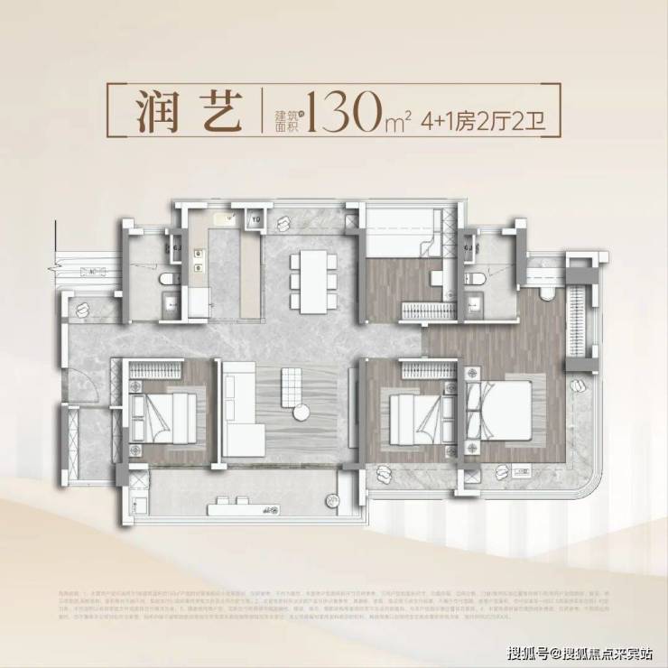 建筑面积约130㎡·南北对流4+1房·两厅两卫