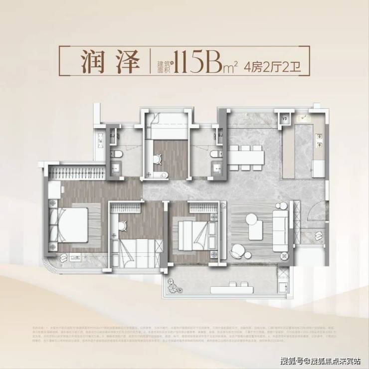 建筑面积约115㎡·南北对流四房·两厅两卫