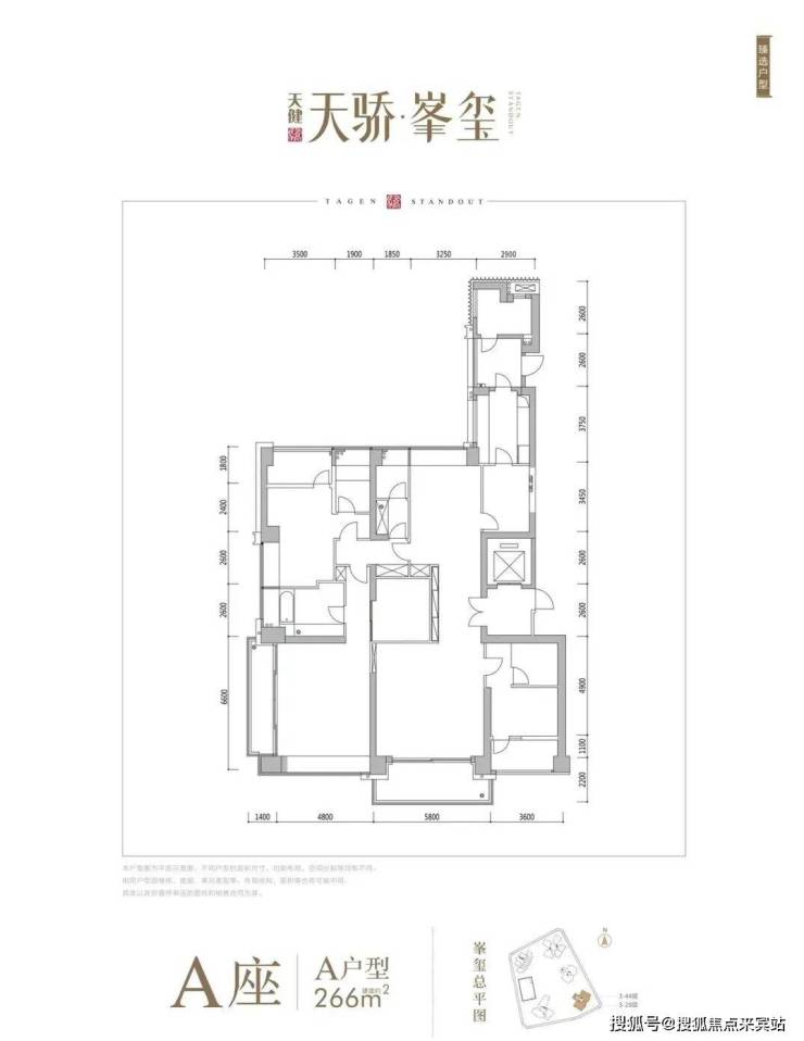 A座建筑面积约266㎡户型