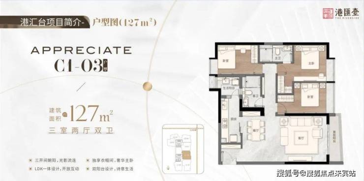 127㎡三房两厅两卫,三开间朝阳,釆光景观无遮挡,LDK一体设计,开放互动,大开间设计,释放更大的活动空调,双阳台设计,诗意生活