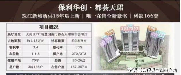 保利华创・都荟天珺,作为保利 “天” 字系高端产品,在珠江新城楼市沉寂多年后惊艳登场。它位于珠城东、马场旁,处于华南快速和黄埔大道交汇处,地理位置十分优越。项目占地面积 11000m²,建筑面积 38000m²,容积率 3.4,绿化率 35%,车位数 306,车位比 1:2.1 。由保利集团开发,共 3 栋楼,层高 20 - 26 层,总户数仅 166 户,主打 157 - 257 平大平层,定位高端豪宅,面向纯粹高端客群。