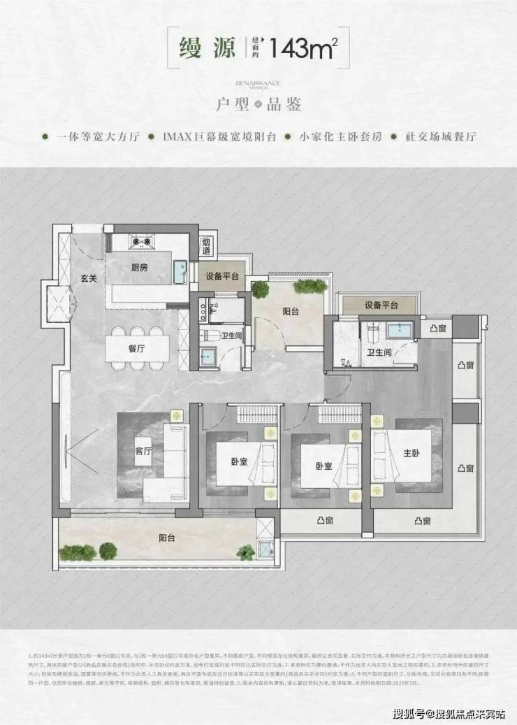01号房,143㎡4房2卫,单价约:7.9-9.3万,总价约:1137-1338万