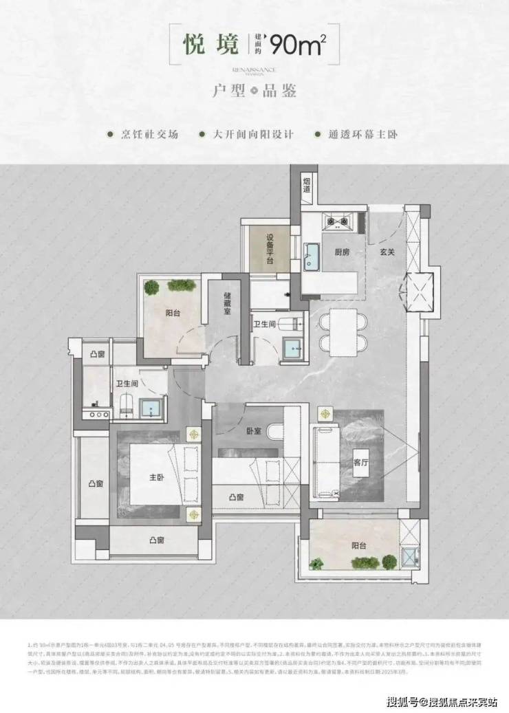 • 得房率:通过创新性的飘窗、双阳台改造、设备平台赠送等设计,实现平均94-96%的惊人得房率。