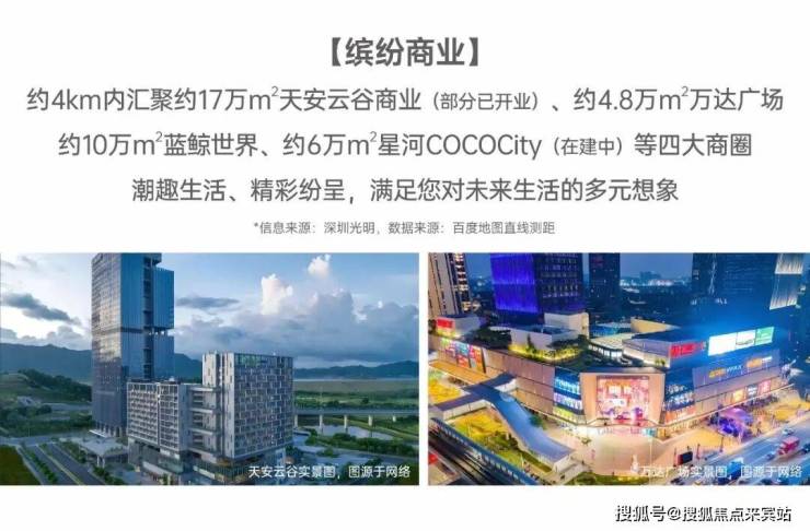 商业配套:项目自带约3500㎡商业,4km内汇聚约17万㎡天安云谷商业(部分已开业)、约4.8万㎡万达广场约10万㎡蓝鲸世界、约6万㎡星河COCOCity(在建中)等四大商圈。