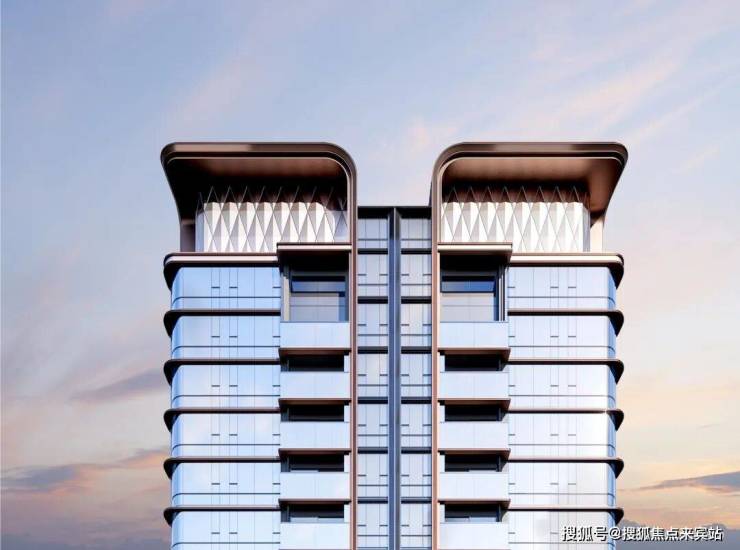 建筑外立面大胆采用弧线艺术勾绘王座式塔冠,以及大面积通透LOW-E玻璃幕墙,辅以香槟金、内敛灰、雅致咖的品质铝板,淬炼出恒久典雅的观感。