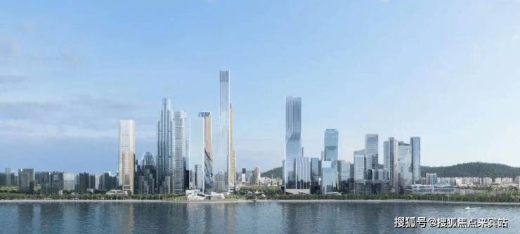 并以“生境共栖,向海而生”为设计理念,采用一字排开无重叠的排布,以及东低西高的格局,将四栋超高层塔楼沿用地北侧错落布置,使形态更加疏朗开扬,形成了起伏有致的天际轮廓。