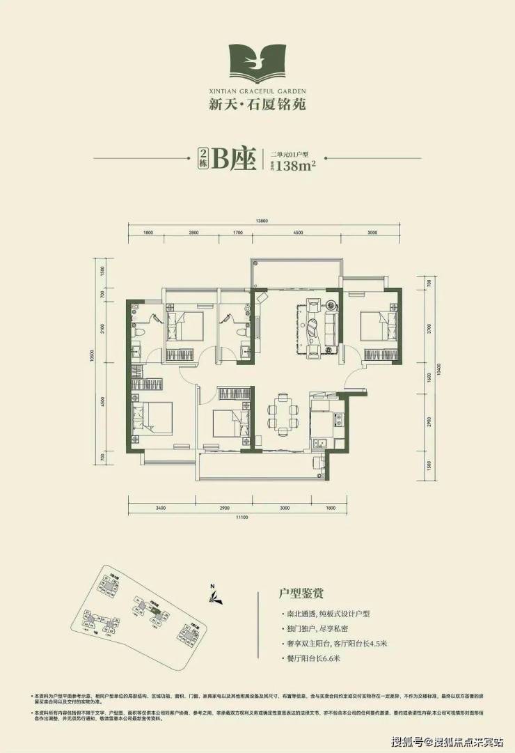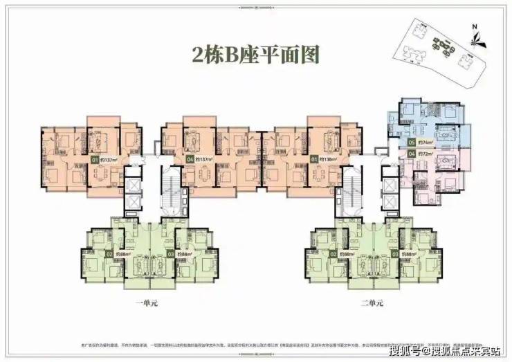 🔹2栋B座一单元01、04户型、2栋B座二单元01户型:面积约为137-138㎡的4房2厅2卫;