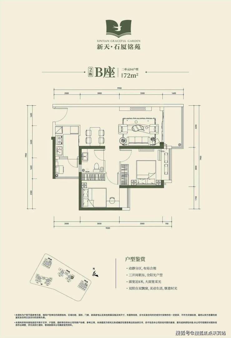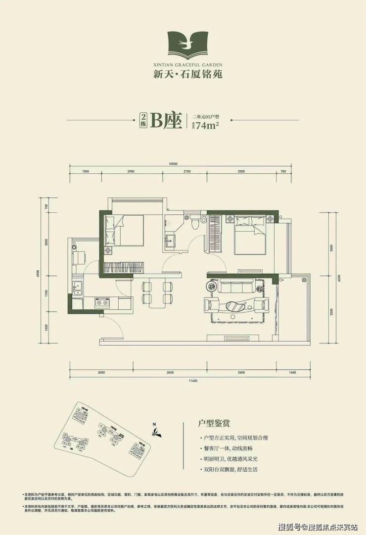 🔺2栋B座二单元04、05户型:面积约为72-74㎡的2房2厅1卫。