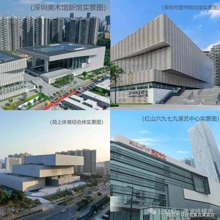 深圳展览馆、深圳市文化新馆 (建设中)、深圳演艺馆、深圳市图书馆北馆,深圳市美术馆新馆、简上体育综合体,项目周边汇聚五馆一体文体配套