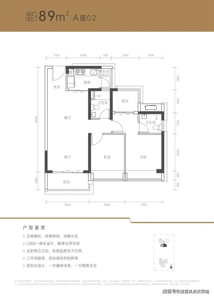 三开间正南朝向;LDKB一体化设计;动静分区