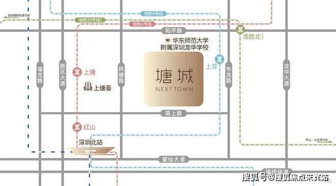 项目近达4号线上塘站、6号线上芬站、33号线龙胜站(在建中)三大地铁轨道,2站深圳北站,3站宝安国际机场。