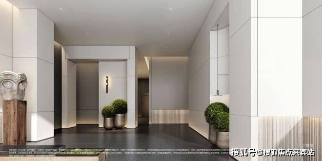 酒店化主入口、次入口、车库入口、首层大堂,酒店化迎宾与归家动线,以无风雨通廊为核,赋予归家更多体验感,带来高效、安心的归家出行之旅。