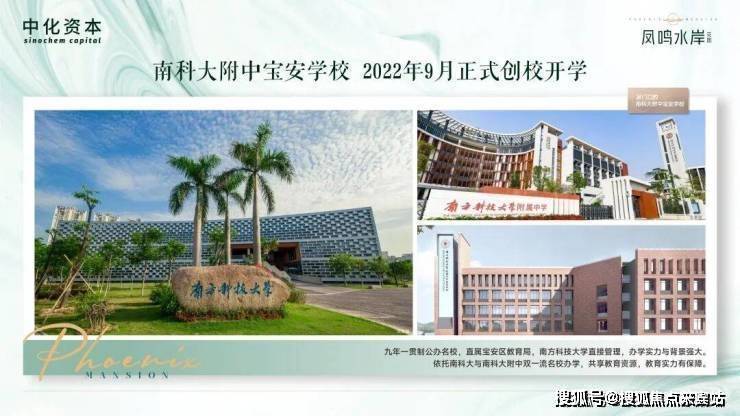 「名校云集 教育黑马升值保证」:项目学区内拥有南科大附中宝安学校、宝安中学实验学校、宝安外国语、新安中学外国语四大名校,其中南科大附中凭借南科大系资源,拥有庞大的院士、金牌教练师资队伍(深圳传统四大都没有这个实力)响当当的名校学区房。