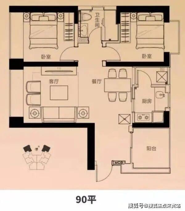 3、89平打造成3房,中心区罕有。