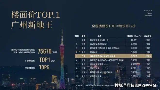 以楼面地价75670元/㎡,刷新广州地价记录,成功跻身广州楼面价TOP1、全国TOP5