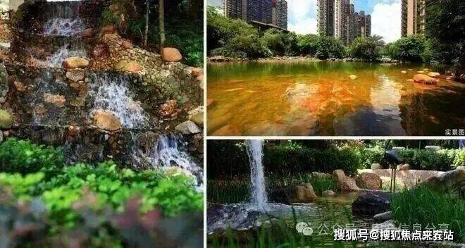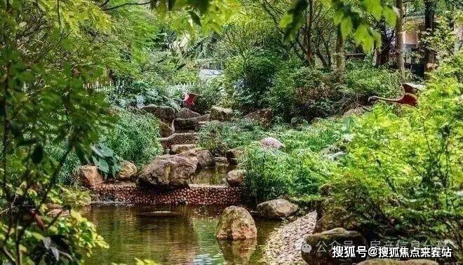 项目内部打造了一条沿着台地蜿蜒的溪流,该水系为市面罕见的活水溪流,贯穿整个社区园林,依据溪岸的曲直不同和地形变化,打造叠水、溪流、瀑布、水潭等多样特色水景,溪岸植物种类繁多,与水流互为风景,沿岸专门设置不同的亲水平台,营造自然灵动的栖心之境。