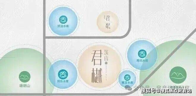 溪山君樾位处深圳“中心湖区“,是深圳最稠密的湖区所在地,项目周边环伺4大自然生态湖泊---民治水库、民乐水库、雅宝水库、南坑水库,居住在此,湖岸微澜风光无限,滋养健康涵养心境,孕育都会生活于家族贵雅之道;独享城市无价峰顶对晤湖景无垠的豁达高远。
