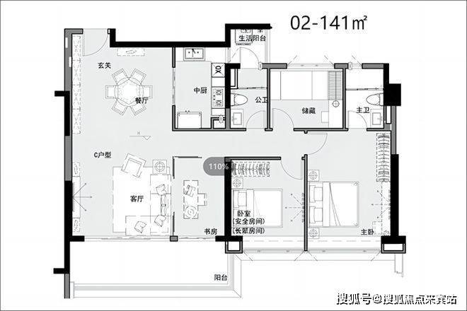 • 6.7米景观阳台,主卧270°飘窗,空间利用率高,适合三代同堂。