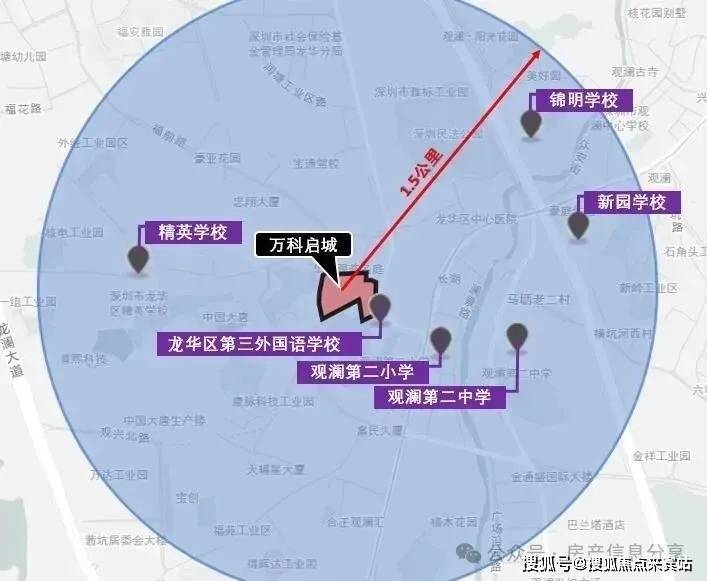 万科启城家园自带幼儿园学校、毗邻龙华区第三外国语九年制学校,另外万科启城家园观澜二中、观澜二小距离万科启城家园也都不远。万科启城家园1.5公里范围内还分布有锦明学校、新园学校、精英学校等。