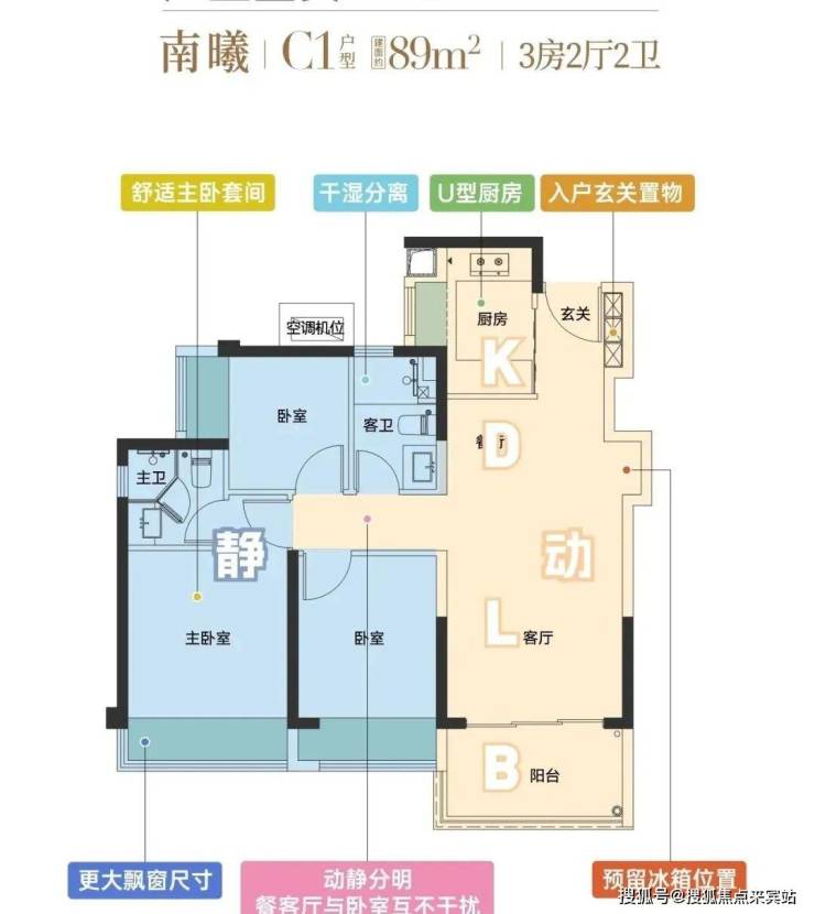 89㎡圈层3房2厅2卫,70套,330-360万,单价约3.75-4万/㎡