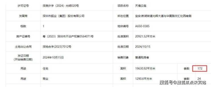 光明又一盘取证了,位于光明科学公园的振业天境云庭,此次推出的是1栋共172套,备案均价为48864元/㎡!