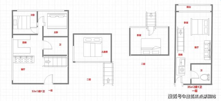 在售户型:35/53㎡2-3房