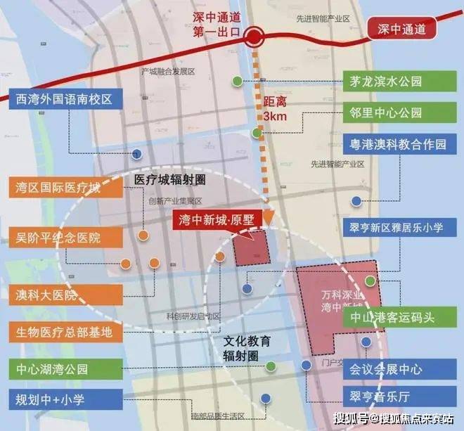 该项目坐落于中山马鞍岛南部码头区域,坐拥医疗与文化教育双重核心优势,紧邻万科·深业湾中新城——一个融合了文化、娱乐、会展及酒店等多元功能的大型综合社区,总投资额超过270亿人民币。
