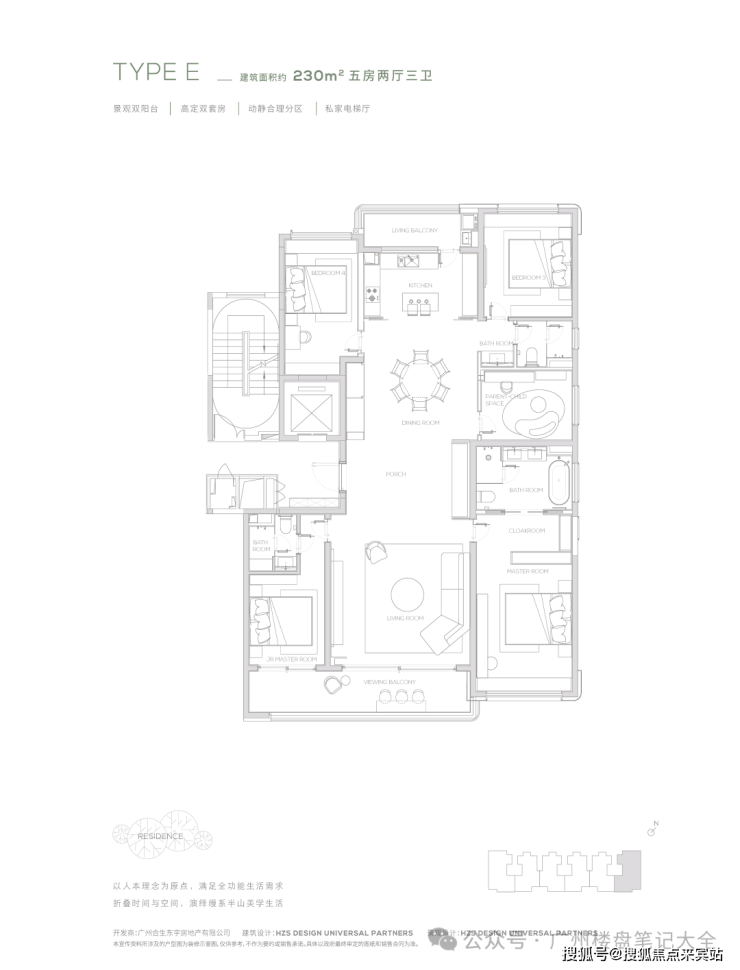 【230㎡户型】观景双阳台-高定双套间-私家电梯厅-双洄游动线