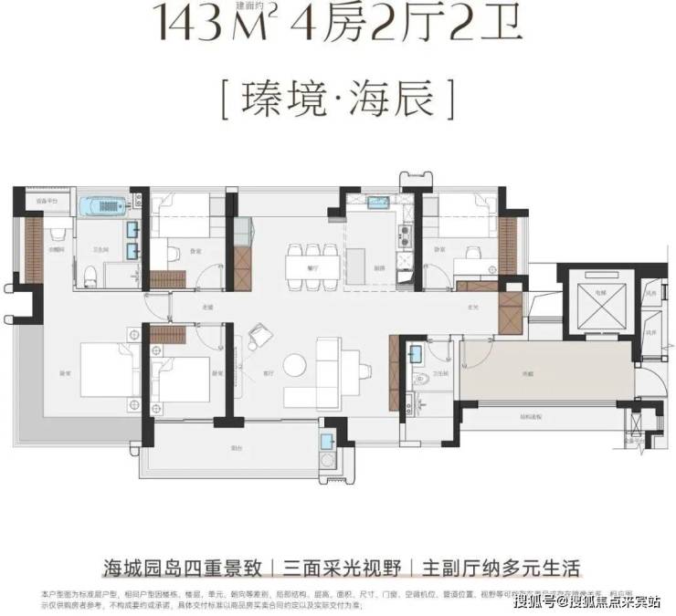 户型方面,主推建面115㎡-143㎡四房,户型使用率超100%,最大可达108%,最高赠送面积近44㎡。