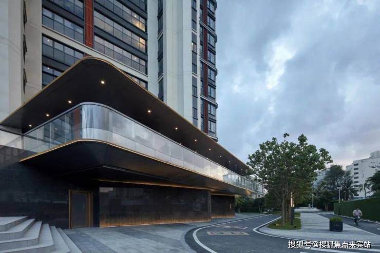 社区内部通过塔楼底部架空,悬挑了一个延续整个界面的风雨连廊,通过首层架空设置的泛大堂,进入社区内部,打造出沉浸式的酒店式归家体验。