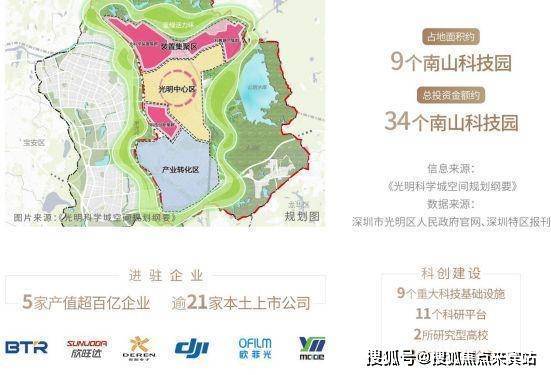 深圳光明区,规划为世界一流科学城和深圳北部中心,光明科学城为广深港科创走廊重要节点,以“一心两区”为蓝图,定位打造“中国新硅谷”,战略地位堪比硅谷之于美国旧金山、张江之于上海浦东,聚集24个创新载体建设,强势驱动科技国际化进程。