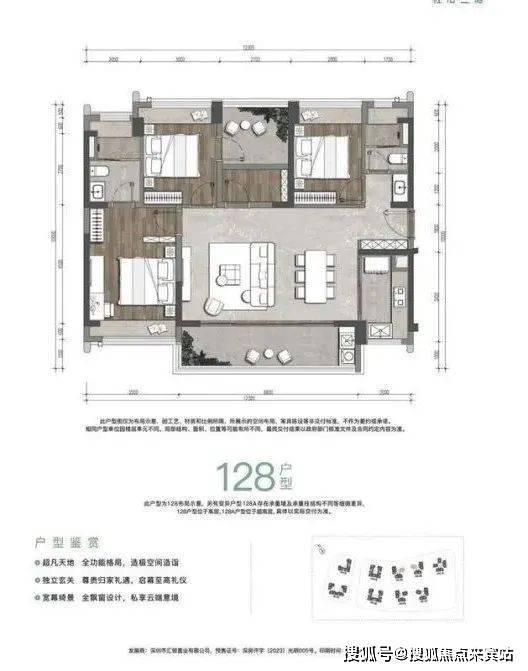 ◎超凡天地 全功能格局,造极空间造诣,◎独立玄关 尊贵归家礼遇,启幕至高礼仪,◎宽幕绮景 全飘窗设计,私享云端意境。