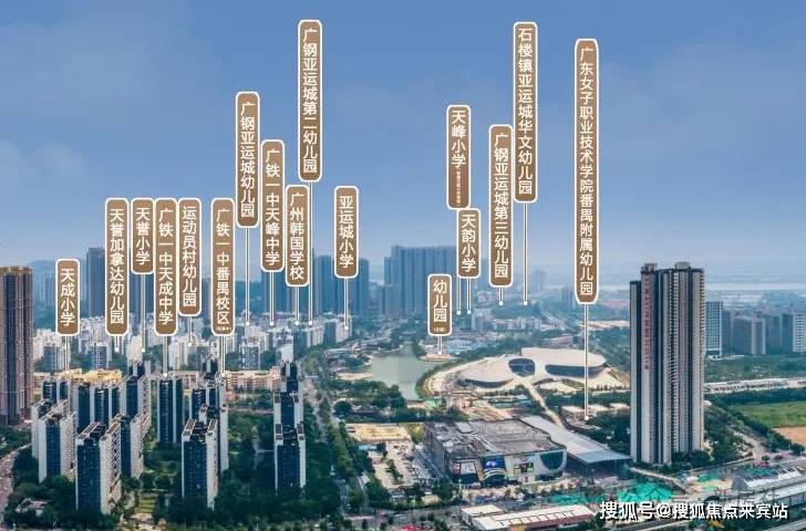 项目约2公里范围内便含有10所:3个幼儿园(加拿达、新建2所幼儿园)、4个小学(亚运城小学、天誉小学、韩国人学校、G地块的小学),去年高考重本率80%的广铁一中,今年新增的广铁一中天峯校区、新增1所高中。
