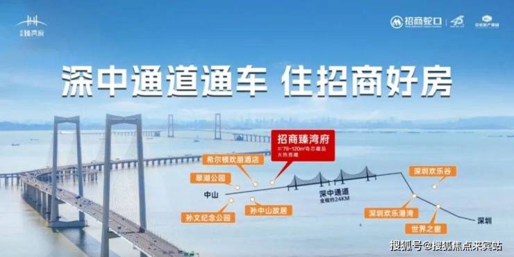 深中通道全长约24公里,是集“桥、岛、隧、水下枢纽互通”于一体的世界级跨海交通集群工程。一桥飞架,改写珠江口两岸融合发展格局,深中通道将深圳至中山约80分钟的车程缩短为约30分钟(信息来源:翠亨新区官网),加速深中同城,实现工作在浅海,居住在西岸,生活自由切换,实现两岸同频发展,共荣繁华。