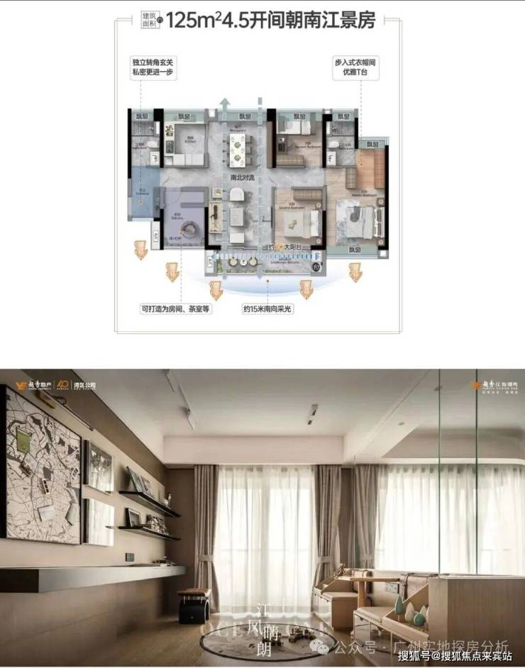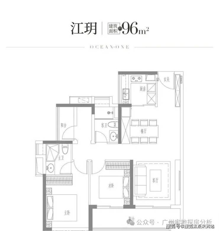 建面约96㎡竖厅:6.4米景观阳台+三开间朝南。