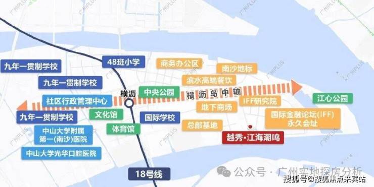 项目位于广州南沙横沥岛南岸,紧邻国际金融论坛IFF永久会址仅420米的直线距离,东望明珠湾大桥,西邻滨江绿化带及凤凰大桥。