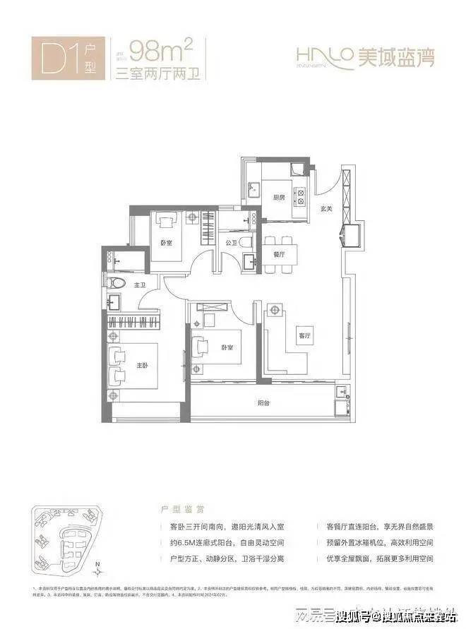 98㎡三房两厅两卫(D3户型)美域蓝湾售楼处电话:400-150-5057