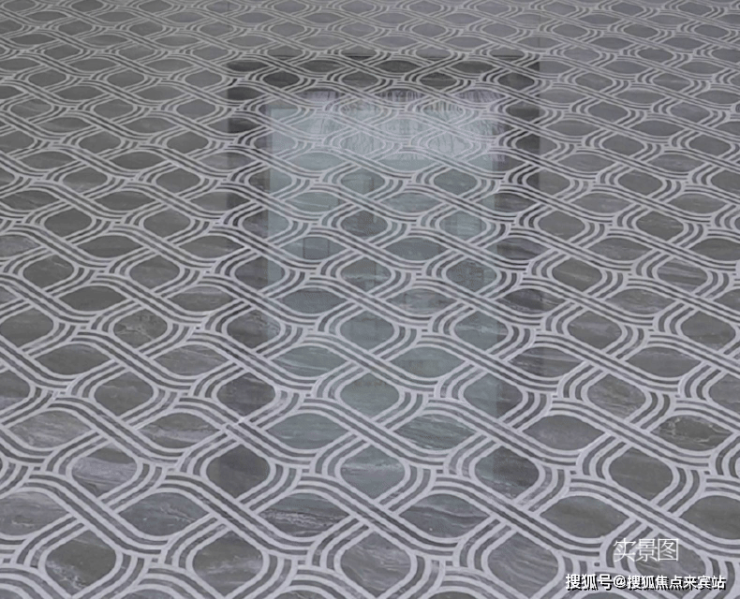 步入楼栋礼序前庭,方胜纹拼花地面如展开的琳琅画卷,精工打造的每道棱线皆诉说着世家的仪式尊荣。立面点缀长条发光白玉石以及天珺特色奢石猫眼绿,于端庄格局中透射温润辉光。方胜图腾在此升华为门庭的家族徽章,以大地为宣纸,镌刻归家的首重礼赞。