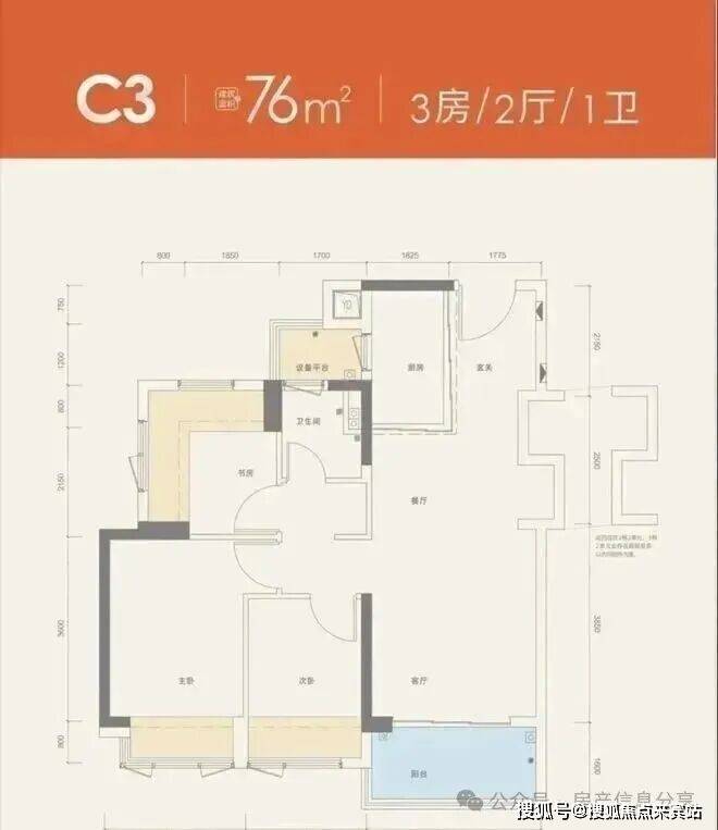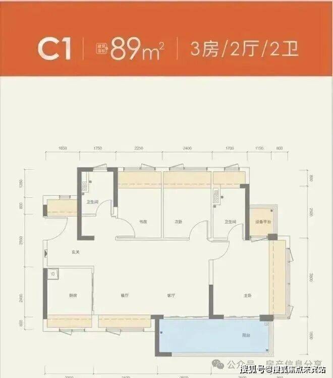 实得率高达约98%,尺寸能与新规前85-90平三房户型媲美。LDK一体化设计让客餐厨融为一体,约3.4米的开间让生活空间更显阔绰。所有卧室都额外赠送进深约0.8m的飘窗(远超市场0.6米标准),厨房外设有一个面积约2㎡的设备平台,这些赠送空间往往给生活带来意想不到的便利。