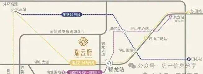 天健瑞云府,坐落于深圳市坪山区碧岭街道沙湖社区锦龙大道与新龙路交汇处西侧约400米处,地处沙湖板块——深圳东部重点发展区域。这一区域近年来依托多维规划,逐步成为集居住、商务、创新于一体的综合型城市门户。项目由天健集团、深福保及深高新集团三家国企联合开发,总占地面积较大,是一个高品质的住宅楼盘。