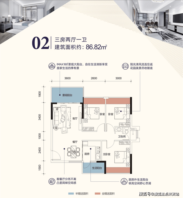 5)2.5㎡超宽观景阳台
