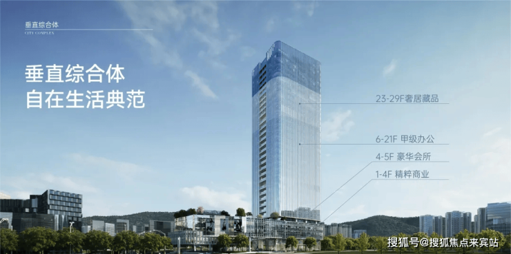 集合云端居住、奢雅会所、精粹商业、甲级办公为一体的垂直综合体,生活&休闲、社交&事业,悦然相逢,自在切换。