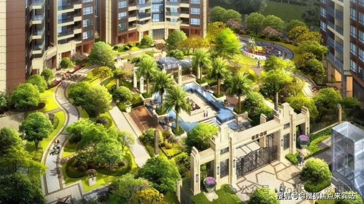 园林布局和谐流畅,地势错落有致,移步异景,创造专享生活逸趣。主入口采用高台府邸的围合设计,营造舒心从容的归家仪式感。
