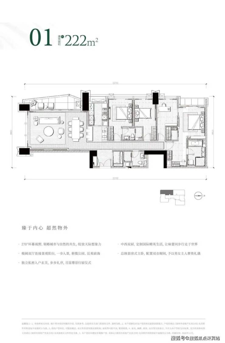 宽境视野:270°环幕观景,城市天际尽收眼底产品设计融入城市景观及公园景观,端头明星户型打造270°宽景观面。远眺前海灯火辉煌、近揽中山公园至美画卷。
